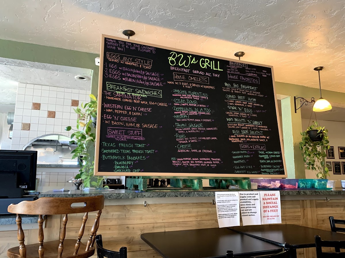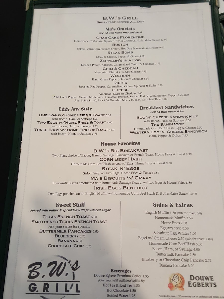 Bacon, caramelizad onions ,green peppers , cheddars with home fries